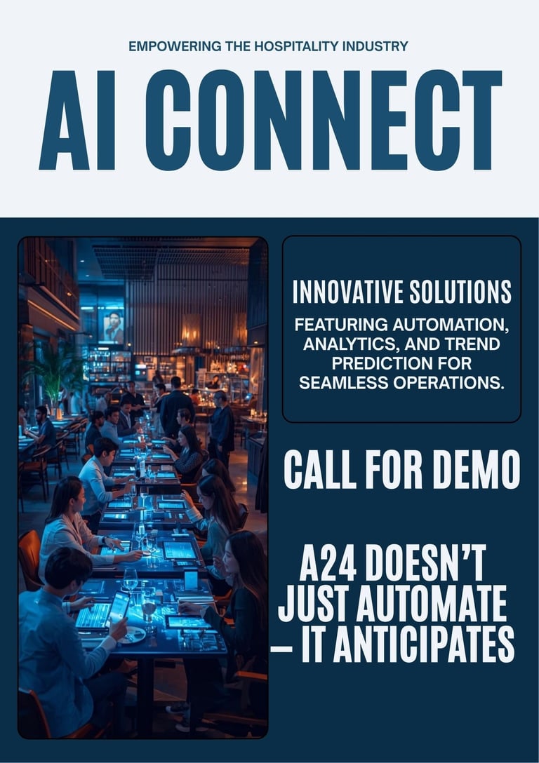 A24 is an Agentic AI-powered platform that connects the entire restaurant and hotel ecosystem — from menu to management.